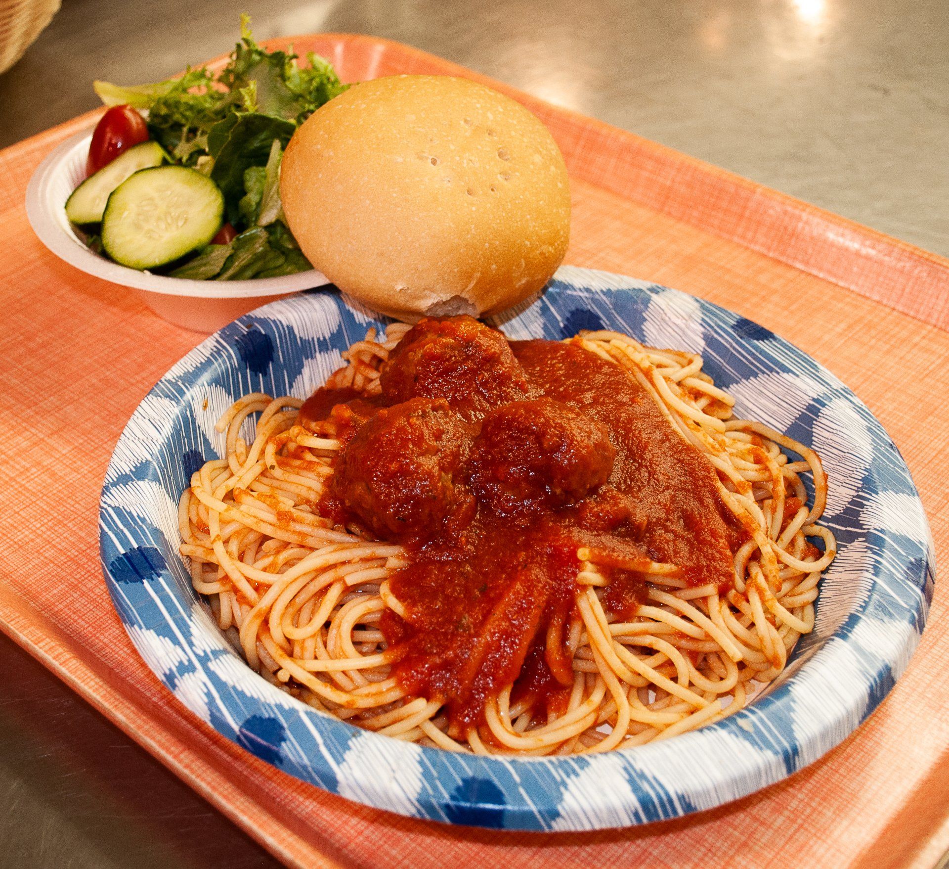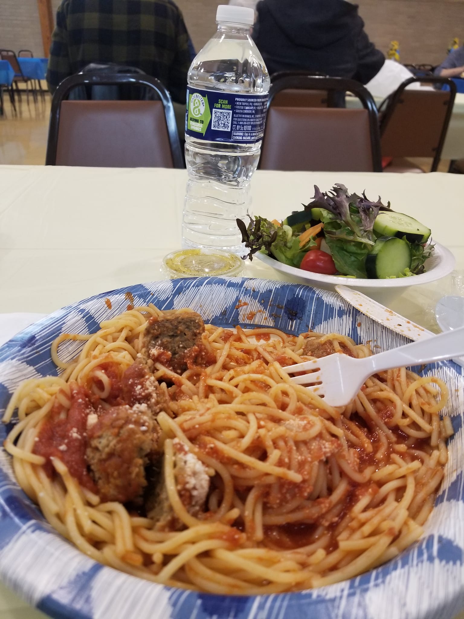 Spaghetti & Meatball Platter, Salad, Bread & Butter, non-alcoholic beverage. $15. Dine-in and to-go options available. Alcohol beverages & dessert available for purchase (cash only)